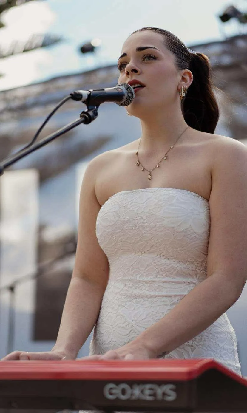 Tegan Clark is a passionate vocalist and musician with years of performance experience across the Gold Coast and Brisbane. With over seven years behind the mic and at the keys, she has recently completed her Bachelor of Contemporary Music at Southern Cross University, refining her skills as both a performer and educator.